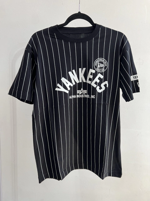 Descubrí el remeron de algodón deportivo Yankees en color negro con elegantes rayas blancas, la prenda ideal para quienes buscan combinar comodidad y un diseño moderno con un guiño a la tradición deportiva.